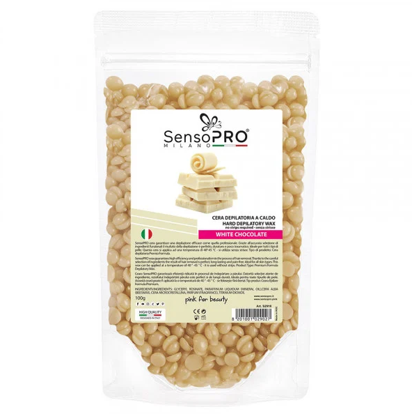 Ceara Epilat Elastica Granule SensoPRO Milano White Chocolate, 100g este un produs premium pentru o epilare eficienta, potrivita atat pentru uz profesional, cat si pentru uz personal. Iti va pastra pielea fina, fara vreo urma de fir de par, timp indelungat! Acest tip de ceara se incalzeste intr-un incalzitor de ceara traditionala.