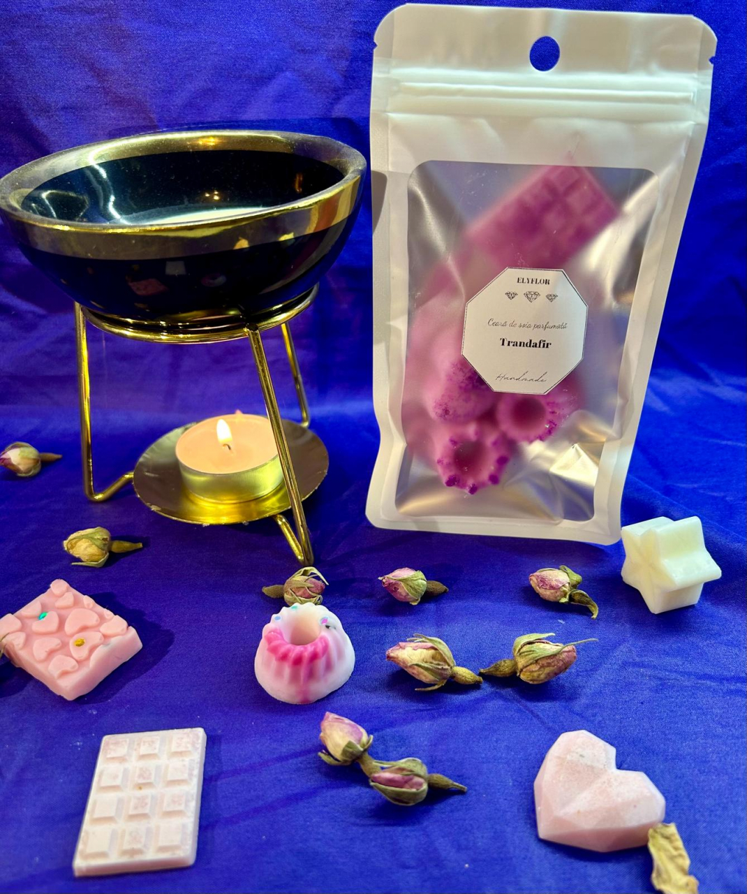 Bucata de ceara se adauga in spatiul difuzorului ceramic iar in interiorul acestuia adaugati lumanarea pastila .